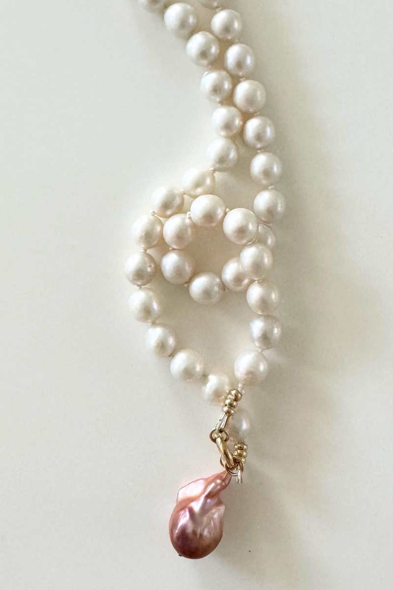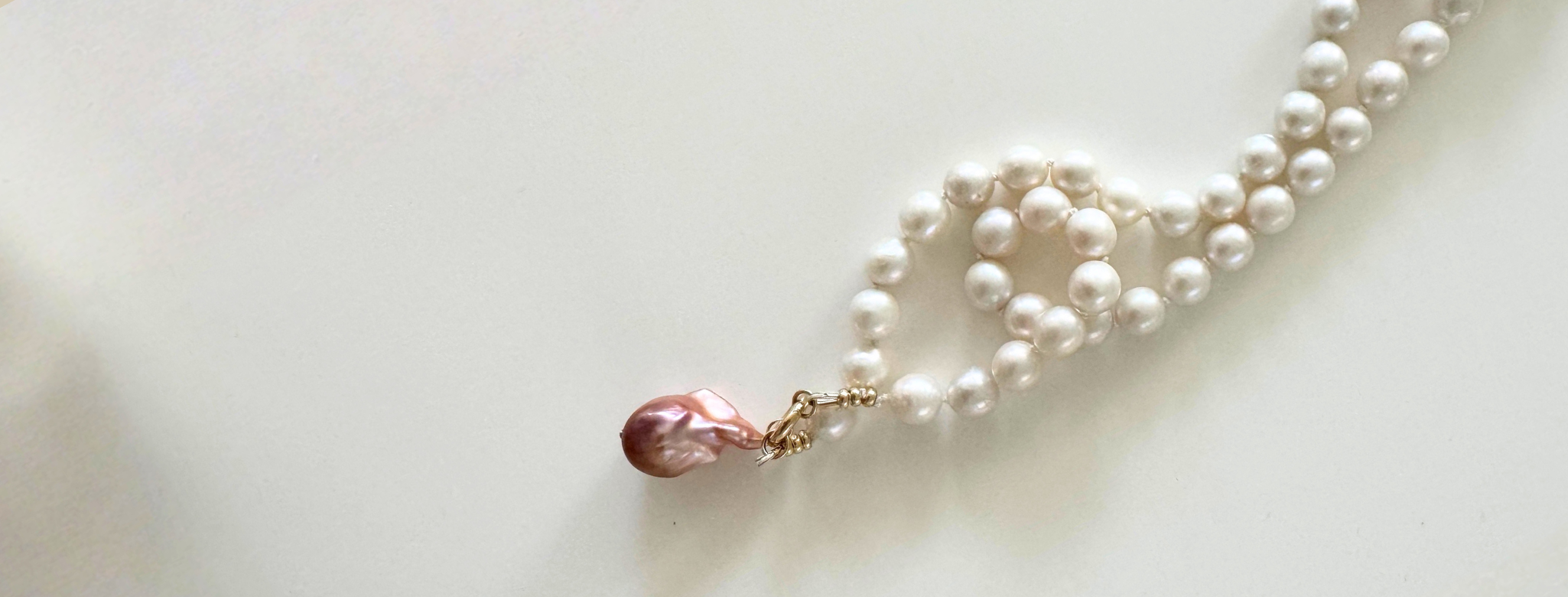 14K Gold Malachite Bead Necklace with Drop Pendant