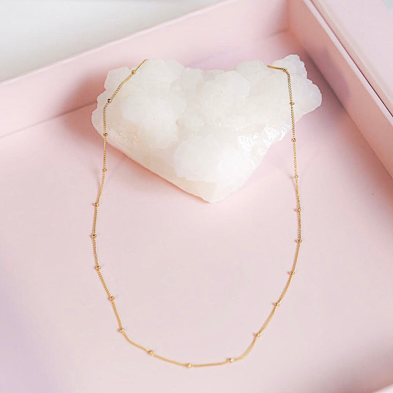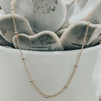 Sweet, simple choker made up of 14K gold filled chain and mini dots. This choker adds a touch of shine on its own, or pairs beautifully with other chain necklaces for a layered look.
